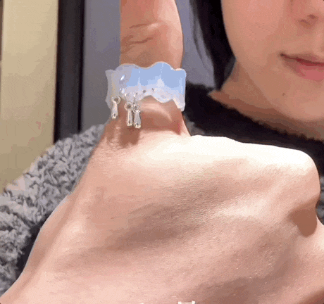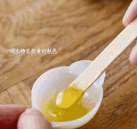 胶水滴入着色剂混出理想的颜色后,刷在蒜皮上照灯固化。