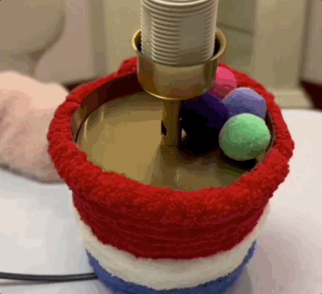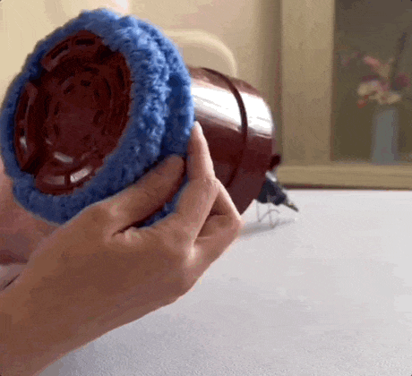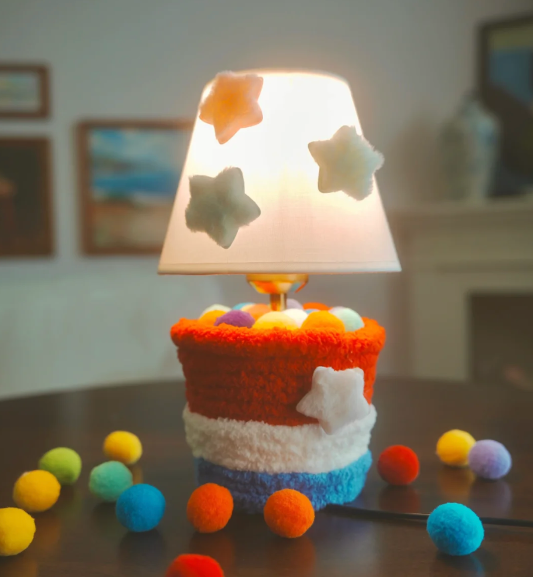 大体缠完毛线后,还可以在裸露的表面填充彩色小毛球。