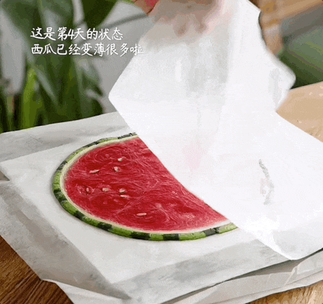 每天换2-3次吸水板,直到第七天,西瓜彻底变干,
