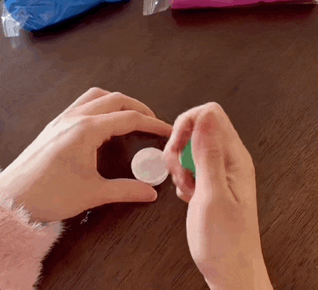 首先,用粘土塞满瓶盖,以此为计量,分出一块块粘土。