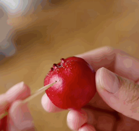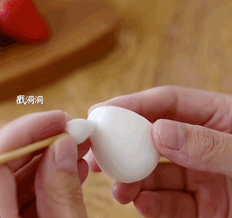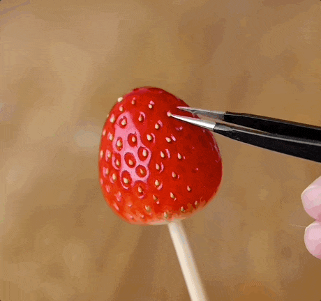 之后等比例戳出小坑,还原草莓不平整的表面。