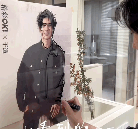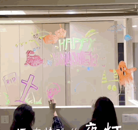 家里空闲的玻璃墙面,画上老婆“最爱的男人”,