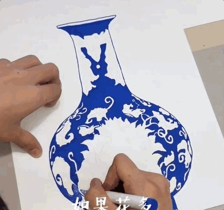 复杂的就在纸上画出青花瓷的图案,往瓶子上一套,身价翻一番。
