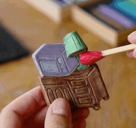 在粘土块后塞入磁铁,等它们全部晾干,就可以贴在冰箱上。