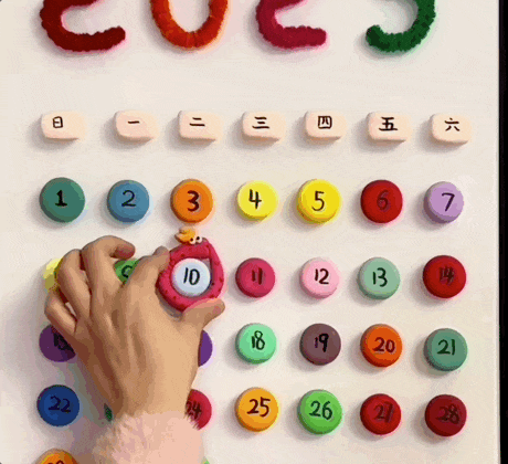 至于日期,可以将粘土塑成长方块,写上一到七的文字。