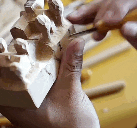 沿着线条,先锯后刨,一点点打磨出轮廓。