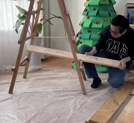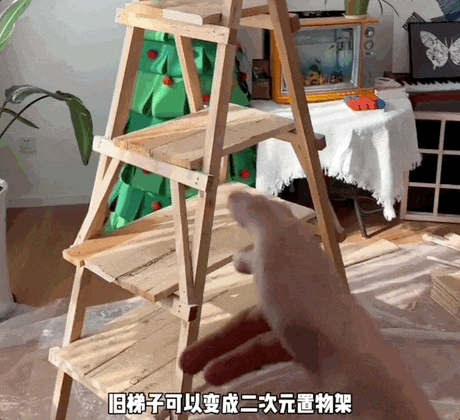 不再安全的老式梯子经由他重新刷漆,变成了二次元置物架。