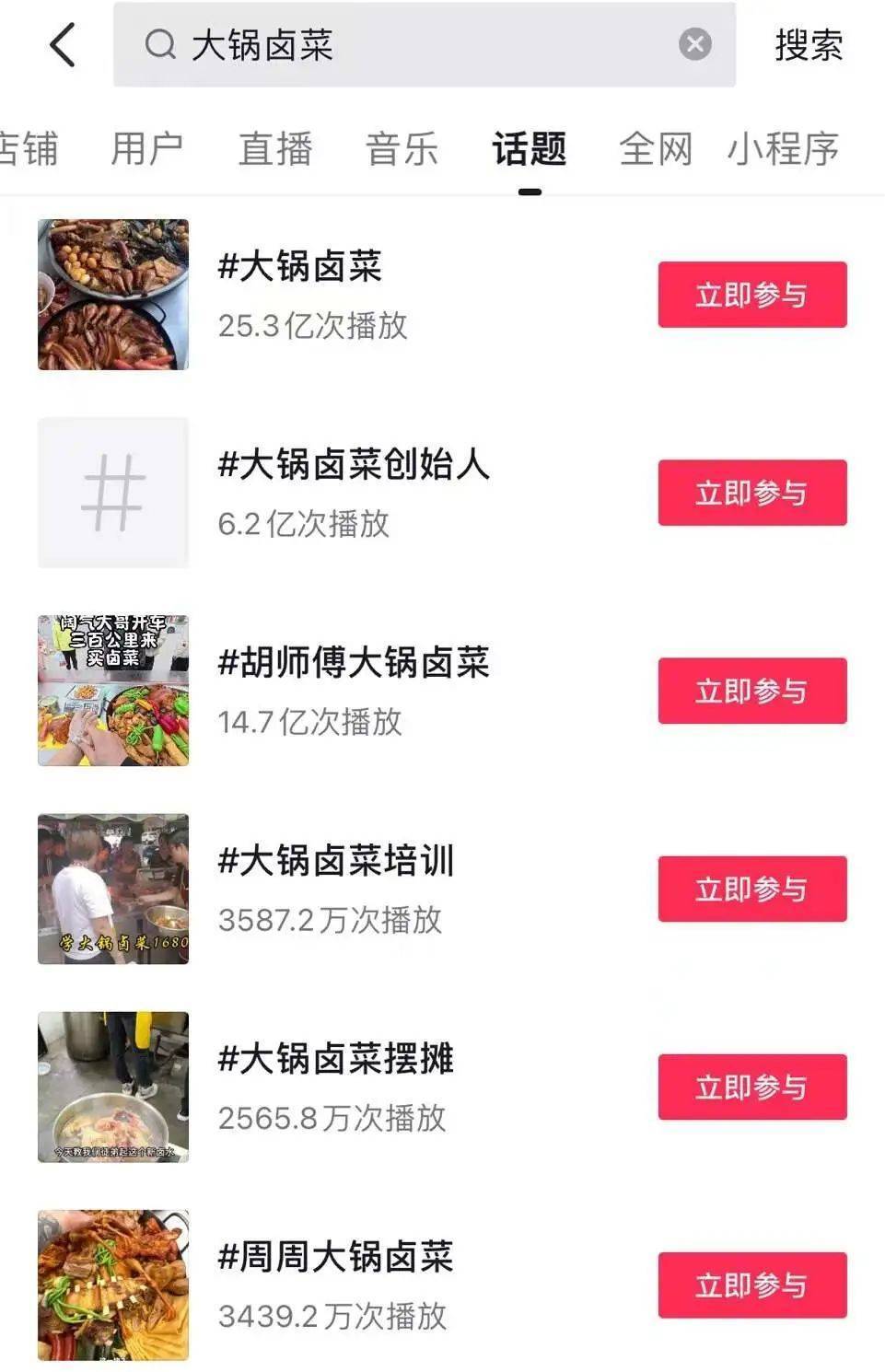 社交媒体上,关于摆摊暴富的传闻层出不穷,日前,最受瞩目的无疑是大锅卤菜。有关#大锅卤菜# 的话题频繁登上微博热搜,而在抖音上,相关话题的总播放量已高达45亿次。