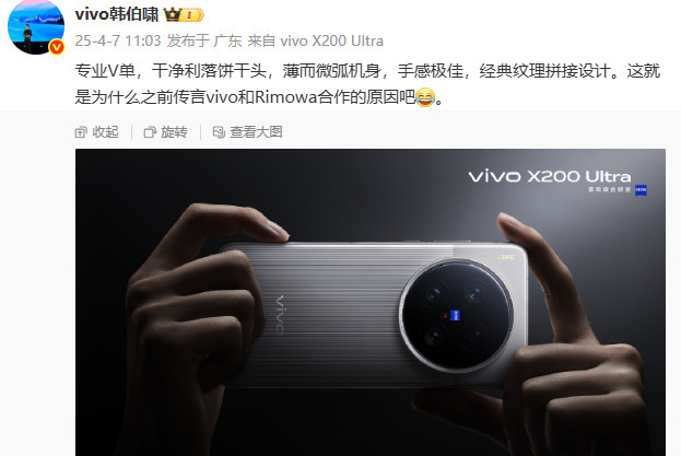 关于vivo X200 Ultra,目前vivo X200 Ultra的官图已经正式曝光,其设计和细节令人眼前一亮。采用了 “饼干头”DECO,后盖为上下上白加下条纹拼接工艺,质感拉满。搭配直角金属中框的倒角过渡处理,整体机身薄而微弧,手感极佳。