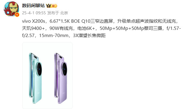 关于vivo X200s,据相关爆料显示,其在设计上与前代X200的全等深微四曲屏有所不同,采用了直边加直屏的方案,整体造型更加简约大气。预计配备一块6.67英寸的三窄边直屏,采用京东方Q10材质,分辨率达到1.5K,支持120Hz刷新率。此外,指纹解锁技术也从vivo X200的短焦指纹解锁升级为备受好评的单点超声波指纹解锁。