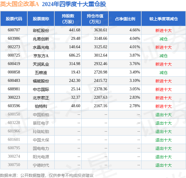 英大国企改革A的前十大重仓股如下: