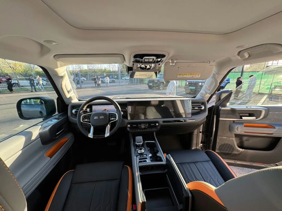 内饰方面,北京BJ40增程版内饰中控台与副驾采用双联屏的设计,全系标配10.25英寸液晶屏、12.8英寸中控屏、12.8英寸副驾屏、9英寸流媒体后视镜,车机配备高通骁龙8155芯片,支持AI语音情景式对话,新车提供10扬声器音响+独立功放。车内提供5个座椅,前排座椅配备加热、通风、按摩,主驾拥有记忆功能。同时,新车保留了位于A柱和B柱的车内扶手,换挡杆使用相对短小的电子式挡杆设计。