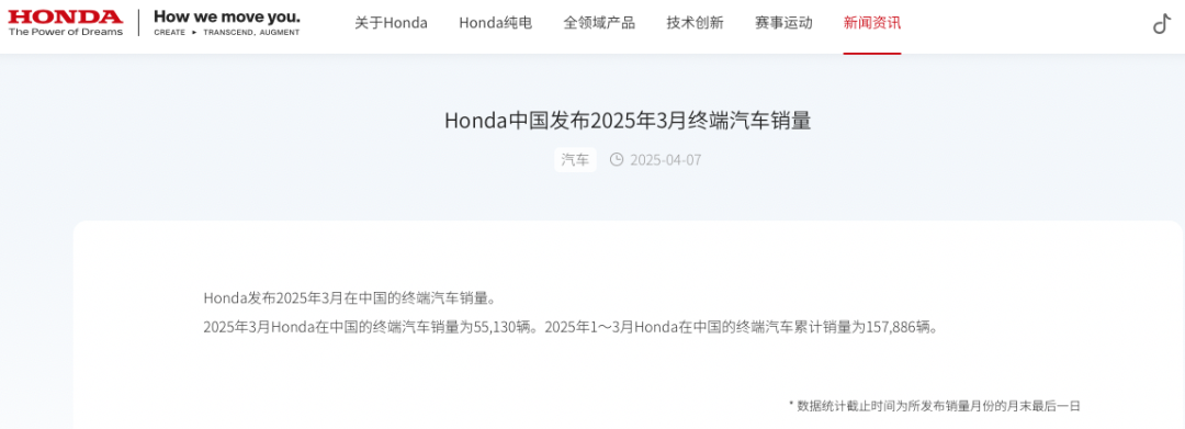 4月7日,本田中国发布2025年3月和2025年一季度终端汽车销量。数据显示,2025年3月本田中国终端汽车销量为55130辆,相比于同期的60449辆下滑8.80%;2025年1-3月本田中国终端汽车累计销量为157886辆,相比于同期的206907辆下滑23.69%。