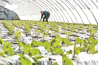 种植户在北大荒集团黑龙江格球山农场有限公司蔬菜基地管理蔬菜。供图/新华社
