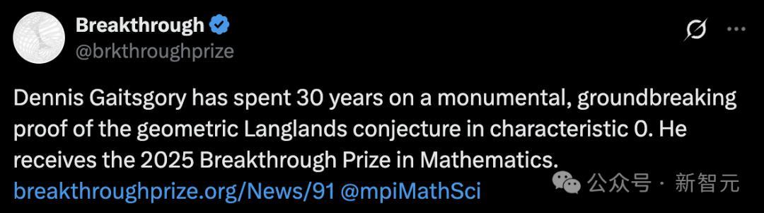 突破奖官方给予了高度认可——他耗尽30年完成了一项具有里程碑意义的突破性证明,解决了特征0下的「几何朗兰兹猜想」。