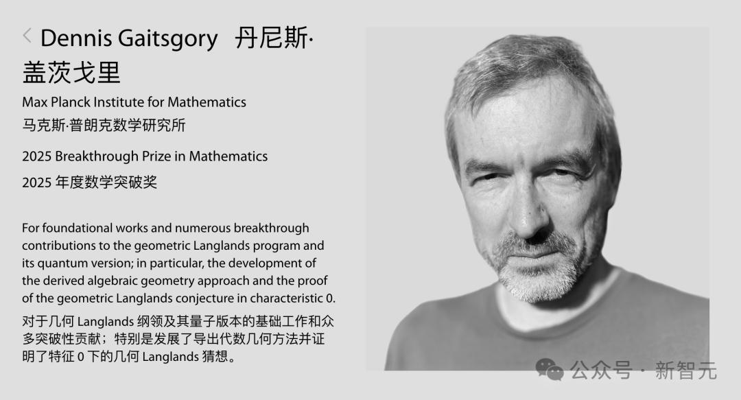 Dennis Gaitsgory,来自德国波恩的Max Planck数学研究所,因其在几何Langlands program方面的诸多突破性贡献,斩获了极具声望的突破奖(Breakthrough Prize),奖金高达300万美元。