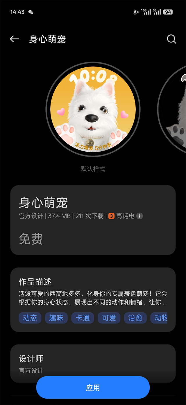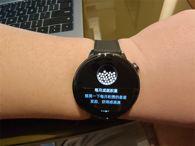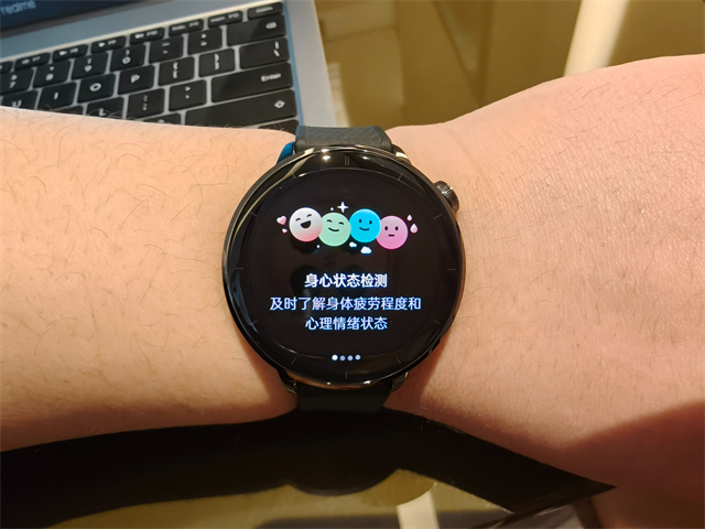 其搭载了一块1.32英寸屏幕,但分辨率一点没有缩水,依然是466×466像素,更高的PPI所以更显得显示细腻,高亮屏幕阳光下也依然清晰。表盘方面,有着许多类似传统机械手表的精致设计外,还有这个性化的身心状态表盘,萌犬“多多”表盘,会根据你的状态实时变化,利用动画实时提供状态调整建议,守护用户的心情健康。