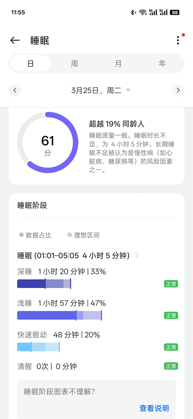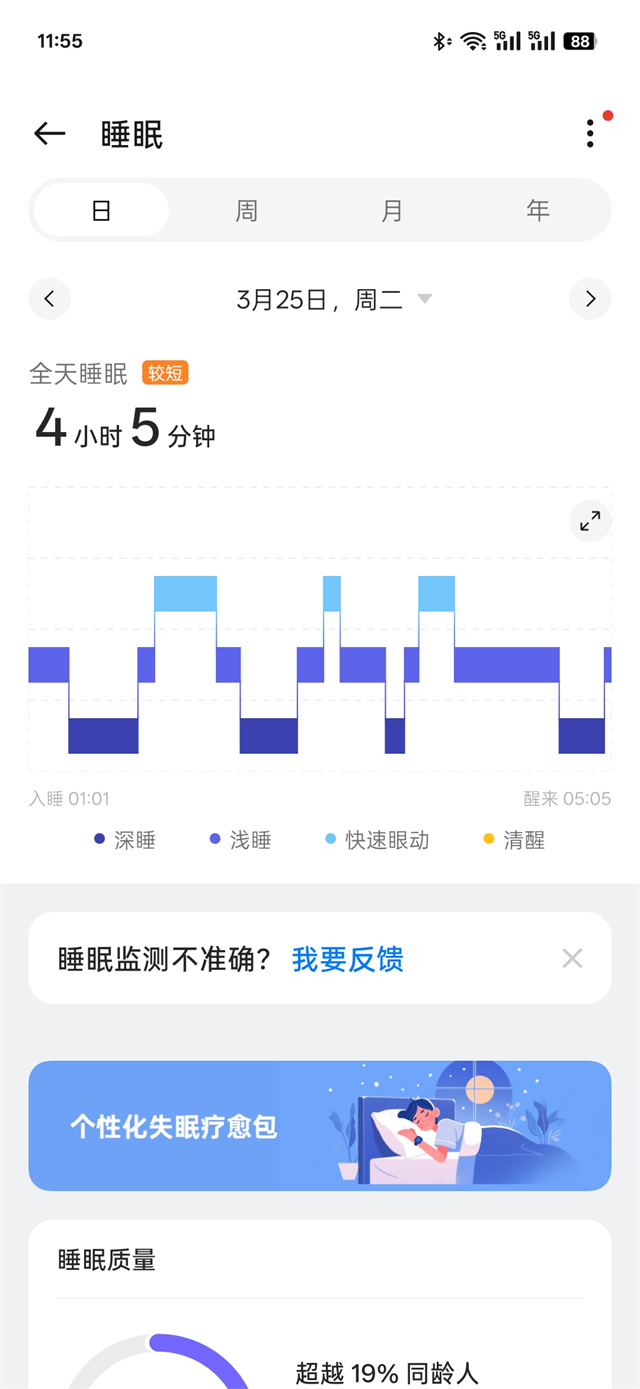 续航方面,电池容量345mAh,全智能状态续航2.5天,在夜间自动切换成长续航模式,经过小编两天使用,电量剩余51%,还能使用一天多,这样的续航表现对于如此小巧的机身来说已经非常不错了,如果选择长续航模 式能够达到7天,没有续航焦虑。