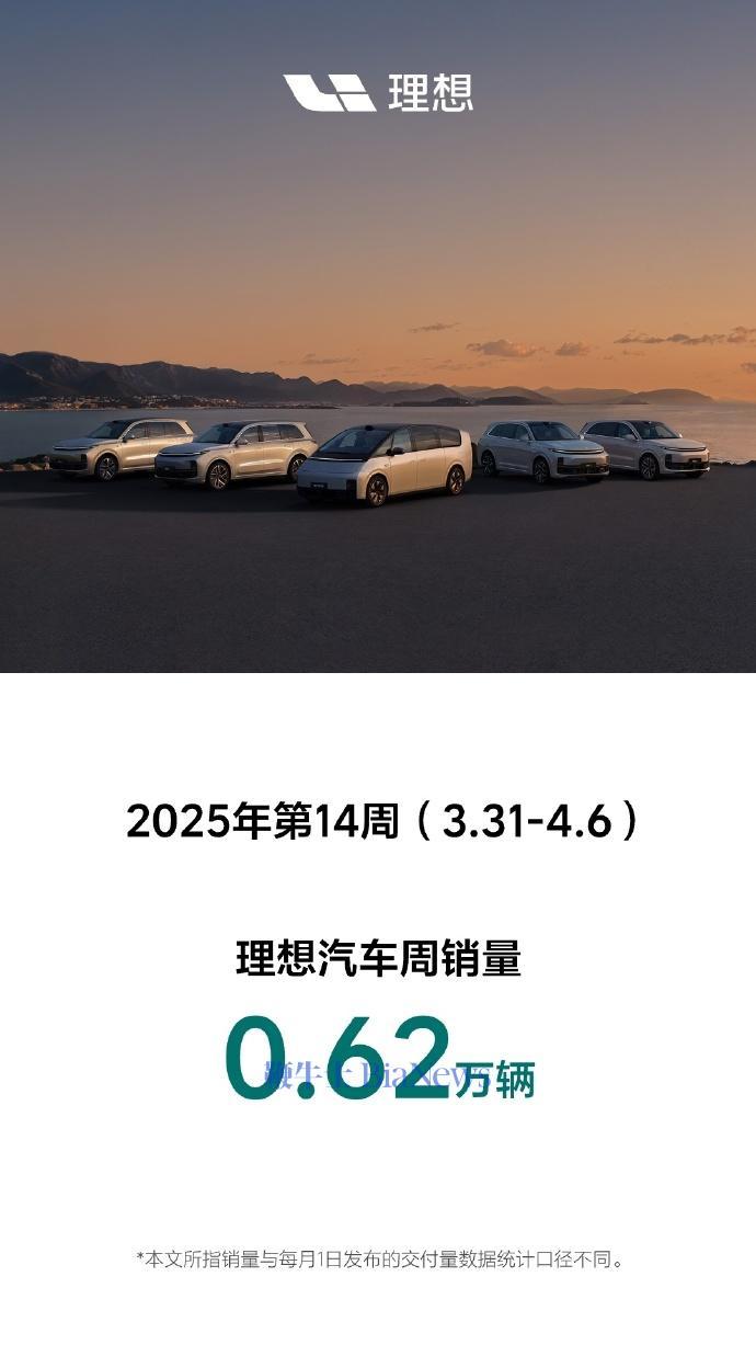 4月8日,理想汽车公布最新销量数据,2025年第14周(3.31-4.6),理想汽车周销量0.62万辆。