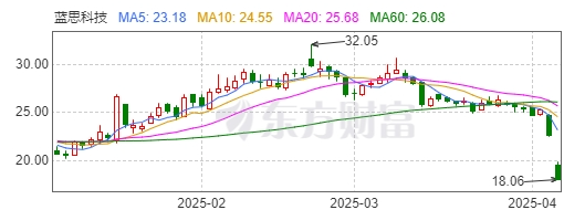 自3月中旬以来,蓝思的股价就一直下跌,原本处的位置也不算高,这下跌的态势到了4月份,下跌幅度更是接近20%。