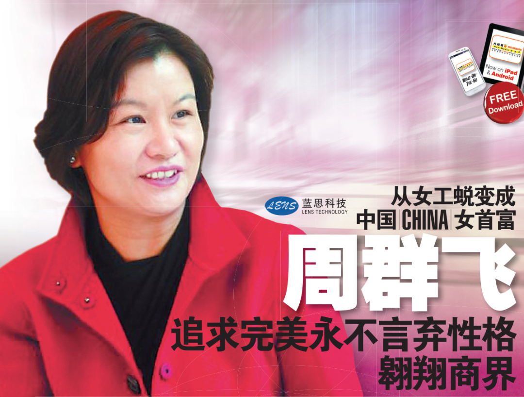 2015年3月18日,蓝思科技在深交所创业板上市,上市当天股价暴涨,随后8天更是一字涨停,市值突破千亿。这也一下子把周群飞以500亿元财富推向内地“女首富”,成为胡润女富豪榜发布十年来中国诞生的第四位女首富。
