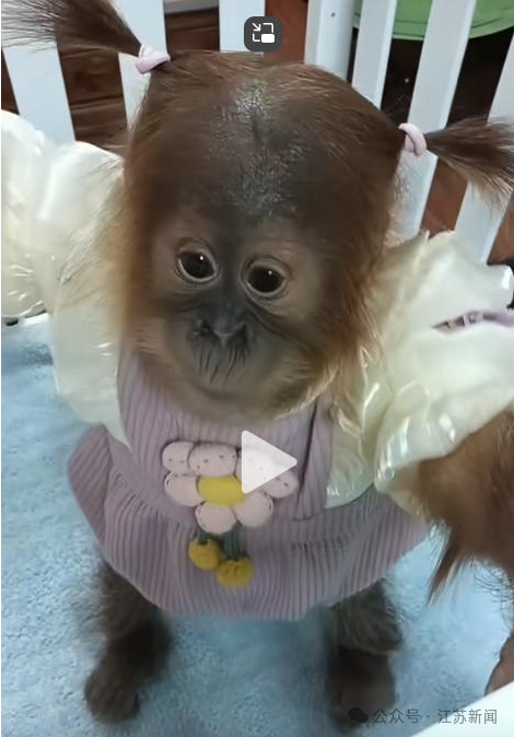近日,河南省沁阳市和生森林动物乐园的一只名叫“七夕”的红毛猩猩幼崽在网络引发热议。在网友发布的照片和视频中,“七夕”扎着小辫子、穿着裙子,与人类频繁互动。