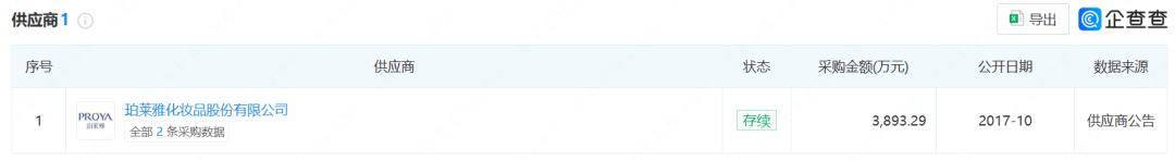 根据招聘相关网站发布的信息显示,苏州爱尚自称是一家专业从事化妆品研发、生产和销售的企业,且与珀莱雅化妆品股份有限公司(以下简称“珀莱雅”)有着深度战略合作关系。其中,在2017年,两家公司的合作金额约3893万元,且2016年将珀莱雅在苏南市场的KA和CS渠道运作到6000万元体量。