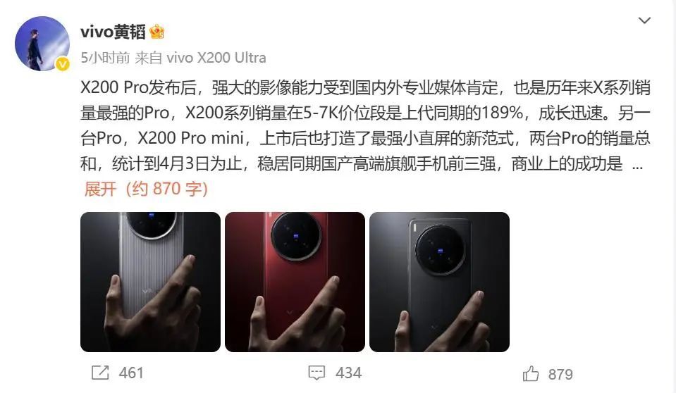 今天,vivo产品副总裁黄韬发布微博,透露了关于vivo X200 Ultra的大量信息。