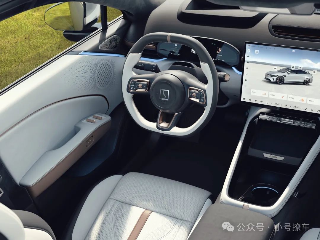 内饰方面基本上沿用了极氪007的布局,但细节方面有所不同,比如换装了全新造型的三幅式多功能方向盘。操作台部分的储物空间也更丰富,曲面全液晶仪表盘、悬浮式中控屏以及电子怀挡都得到了保留。