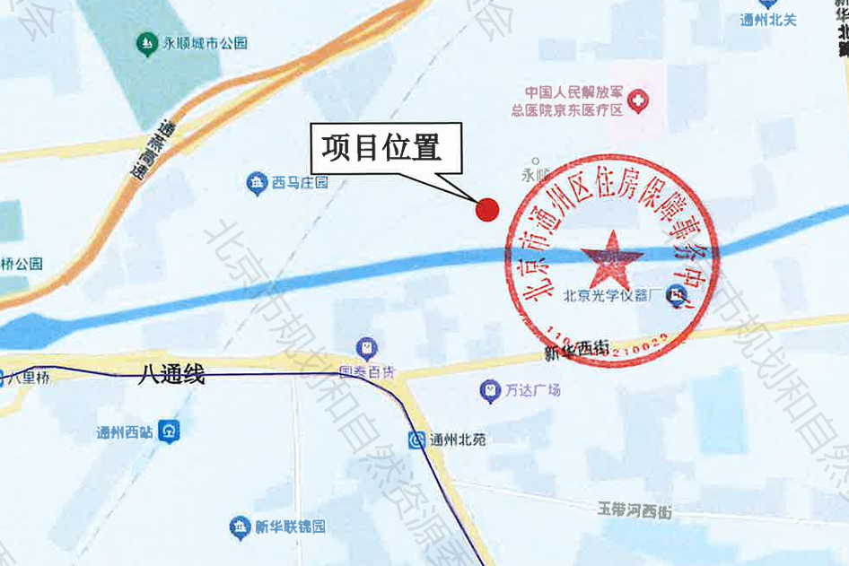 该地块位于东五环至六环之间,属于通州区北关板块,东至永顺西路、西至规划 FZX-0401-6050 地块、南至通惠河滨河路、北至规划一路,南侧紧邻通惠河,东北方向直线距离约200米是在建地铁22号线永顺站。