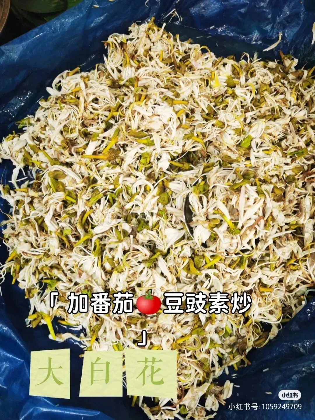 摊贩1号,以花为主打:“核桃花、棠梨花、茉莉花、金雀花、臭菜……都是好野菜,刚摘的,新鲜着”。
