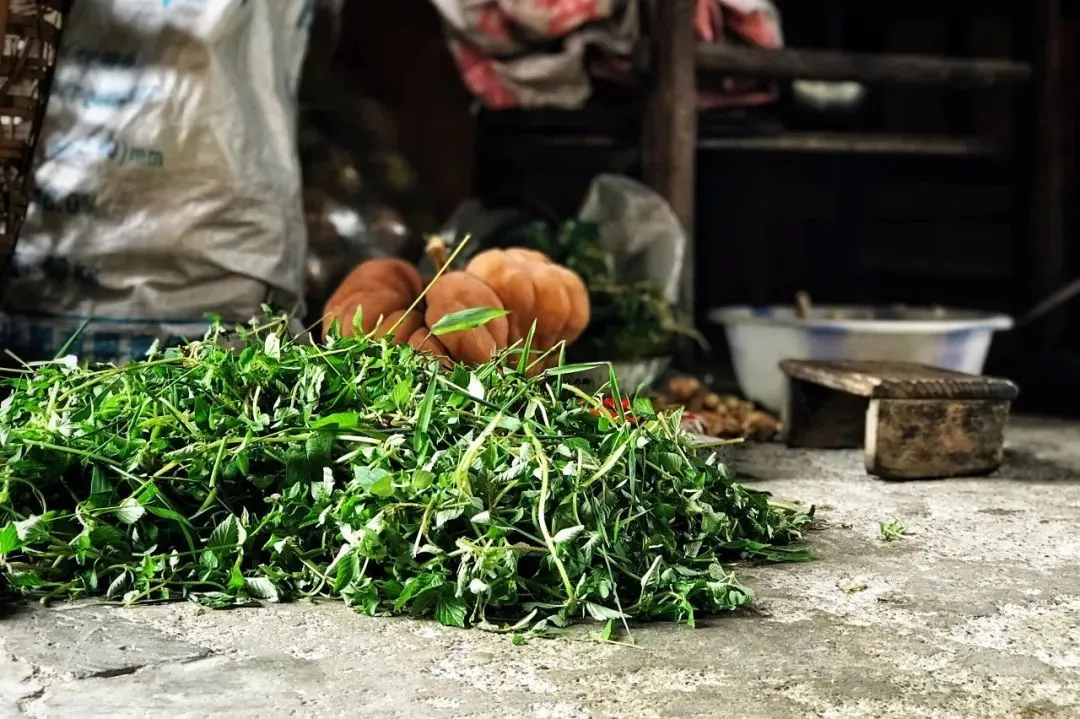 采一篮子酸茼杆,回家用腊肉炒一盘,她形容「神仙也不换」。