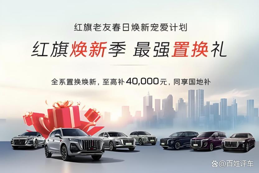 4月1日-4月30日,红旗品牌推出“红旗焕新季 最强置换礼——红旗老友春日焕新宠爱计划”。具体内容为,全系置换焕新,包括40000元置换补贴,同享国地补,同时可享“2年零利息,五年低利息”超级金融礼,“至高5000元保险补贴”,以及“终身免费维修(PHEV车型含三电系统)、免费救援、免费取送服务、四年或十万公里免费保养”的超级服务礼。