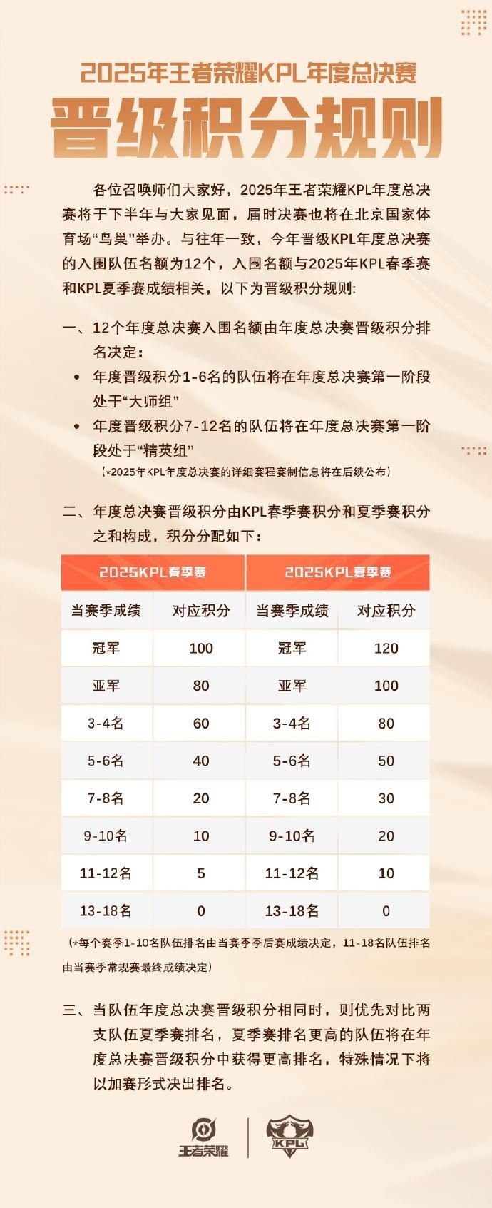 4月9日,@KPL王者荣耀职业联赛 发布消息称:2025年王者荣耀KPL年度总决赛将于下半年与大家见面,届时决赛也将在北京国家体育场“鸟巢”举办。