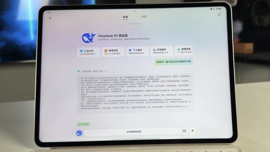 ColorOS 15的AI能力也得到了进化,小布助手接入了满血版DeepSeek,且支持联网搜索,无需等待服务器响应,可以轻松理解复杂指令,解答各类日常问题,撰写文档等。