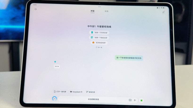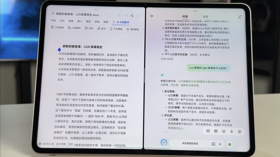 而AI全景虚拟屏的引入,更是解放了用户的双手。只需动动嘴说出想要分屏的应用,系统即可快速启动分屏模式,无论是边看视频边记笔记,还是浏览不同电商平台比价等操作都能轻松实现。