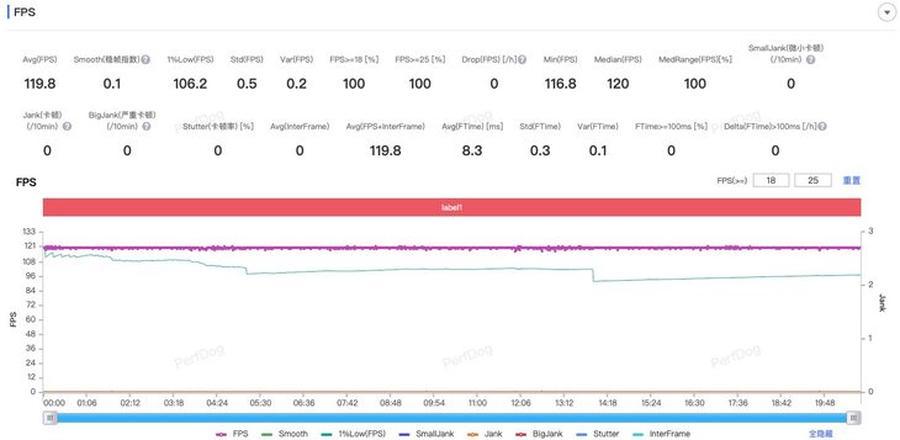 在性能要求更高的《原神》游戏中,OPPO Pad 4 Pro能够以2.1K分辨率画面+120fps同时开启运行,二者全部开启后经过30分钟的跑图实测,我们这台OPPO Pad 4 Pro测得了平均帧率119.8FPS,帧率曲线几乎是平直的,没有出现大幅掉帧,游戏体验非常流畅。