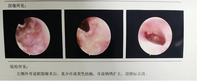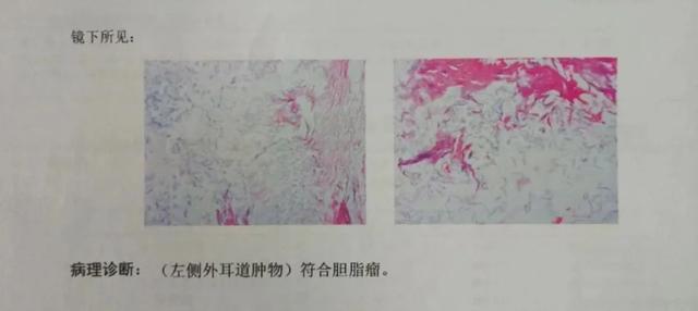 术后常规治疗后顺利出院,病检结果提示:符合外耳道胆脂瘤。