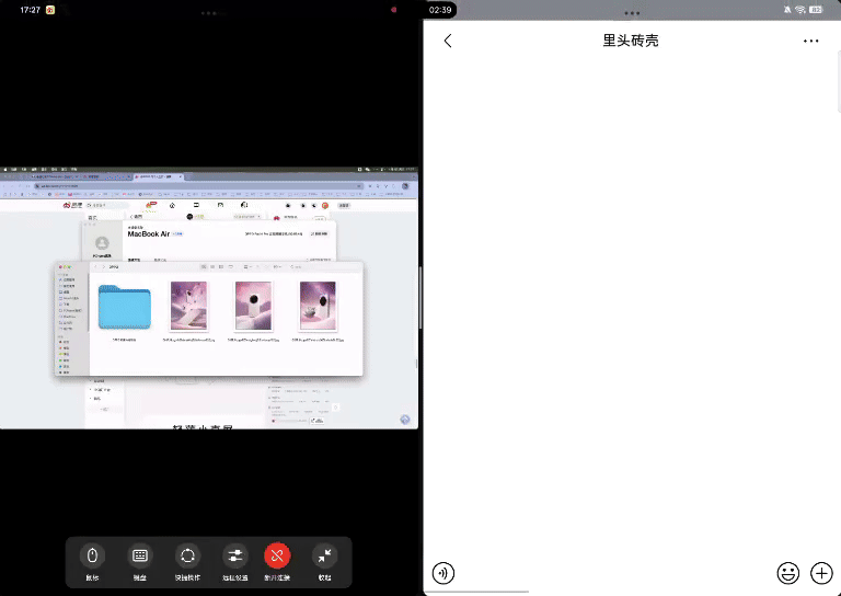 平板和电脑建立了远程连接后,我们可以通过分屏的方式将电脑的文件拽到平板进行存储,图片、视频、文档都可以直接拖拽。可以直接将文件拽到平板的文件管理中,也能直接拖拽到平板的微信进行发送。