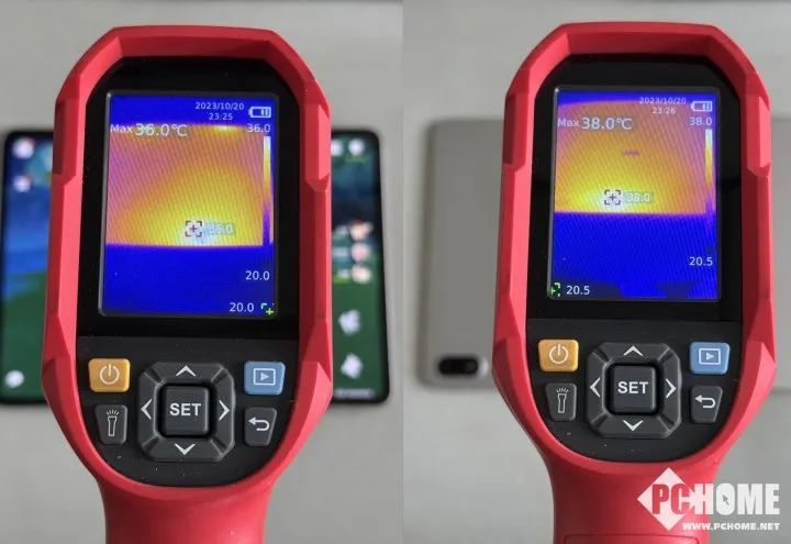 开启《原神》超画后,测试2.3K/60帧,20分钟平均帧率为59.99帧。机身正面温度为38.2℃、机身背面温度为40.5℃。