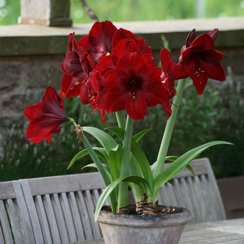 朱顶红是很适合养花新手的,即便是没养过花的人,你也可以将它种好,前提是买到比较健康饱满的种球,买回来的种球剪掉枯萎的根系,如果没有腐烂的情况,就可以直接种到盆土中,注意球的一半以上,要露出面,不要将整个球埋土里。