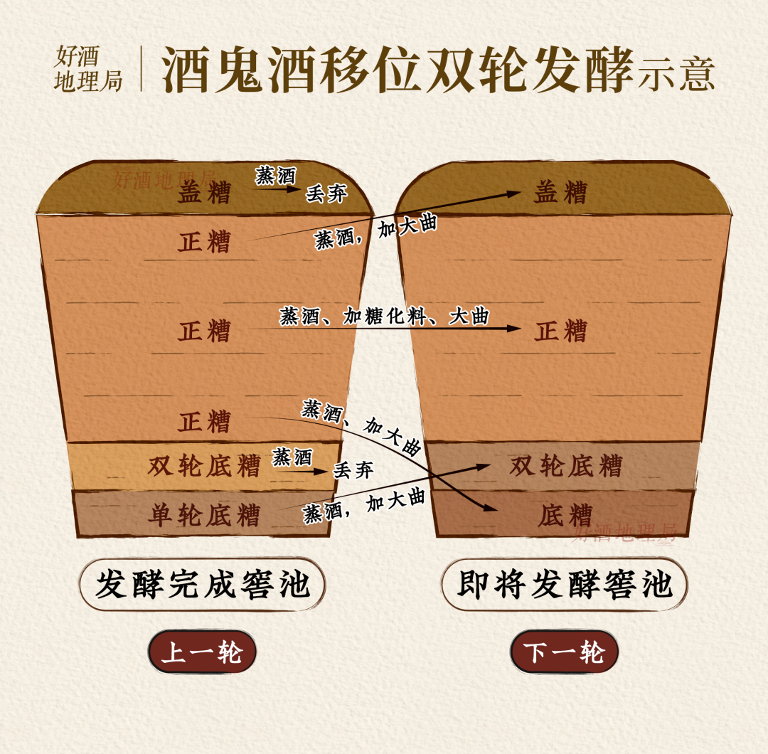 ▎“双轮发酵”是指在传统固态发酵的基础上,对酒醅进行两次投粮、两次发酵的工艺模式。制图@好酒地理局视觉中心