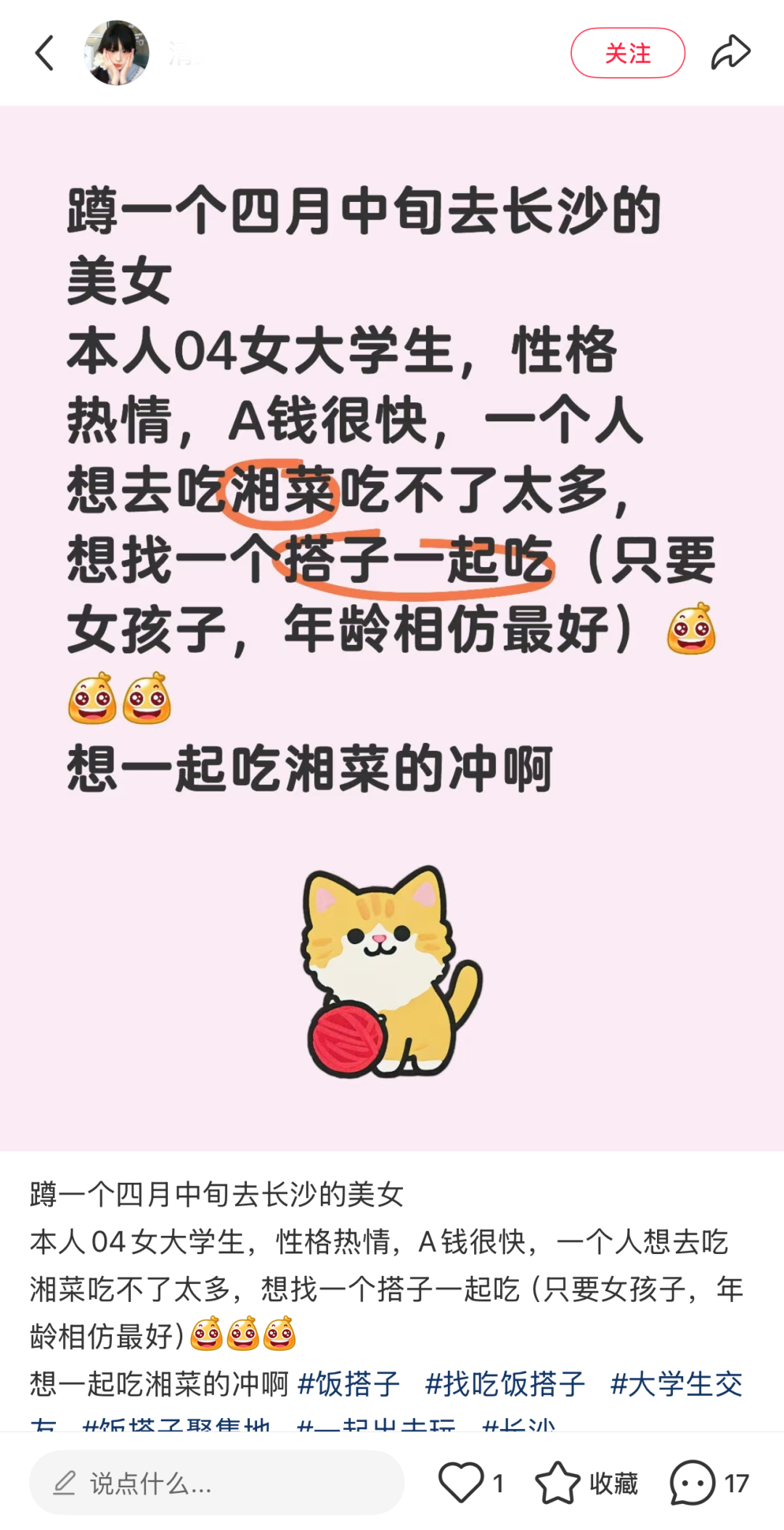 今年五一前夕,她果断在小红书发了条“长沙美食搭子招募”,很快匹配到两位同城网友。“我们约定AA制,不干涉彼此作息,只管闷头干饭。”