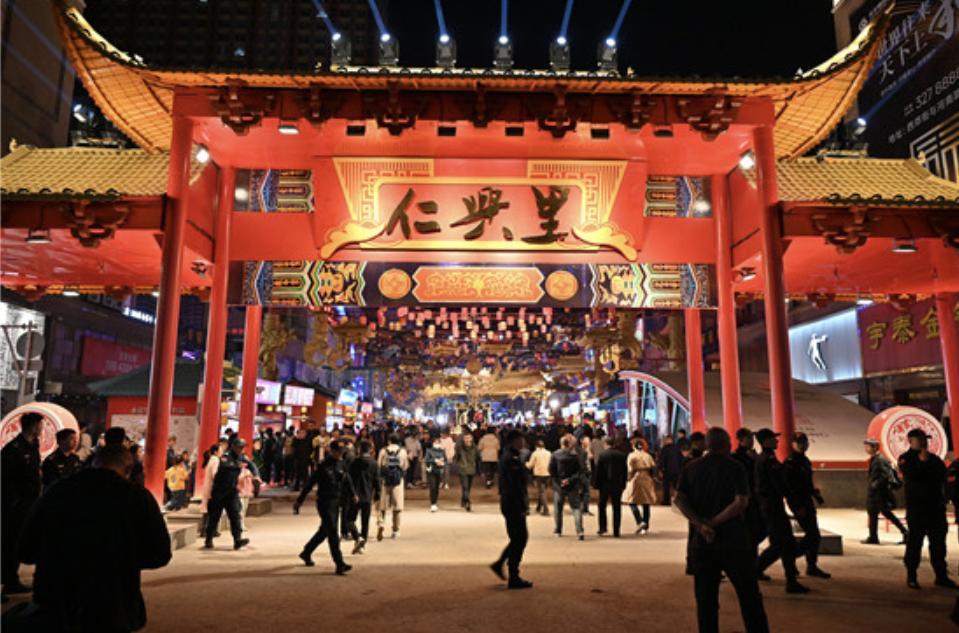 仁兴里街区全长520米,拥有约18000㎡的宽广空间,其独特的720°穹顶设计为游客打造了一个全方位的互动体验平台。