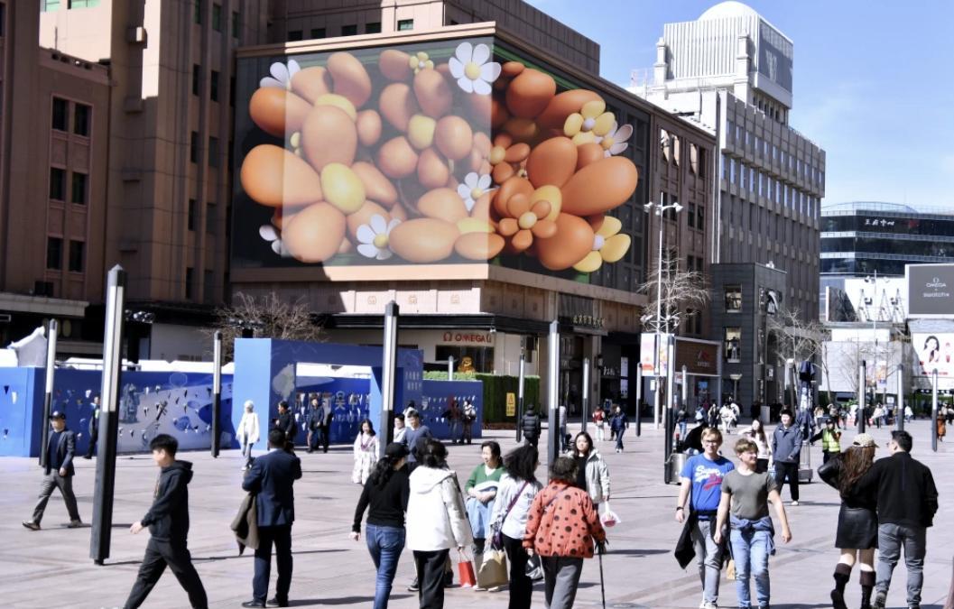 2)3D大屏成为新打卡点: 百货大楼前展示的裸眼3D大屏以酷炫视觉效果吸引游客,成为新晋网红打卡地,同时结合动态文化内容传播北京城市形象。