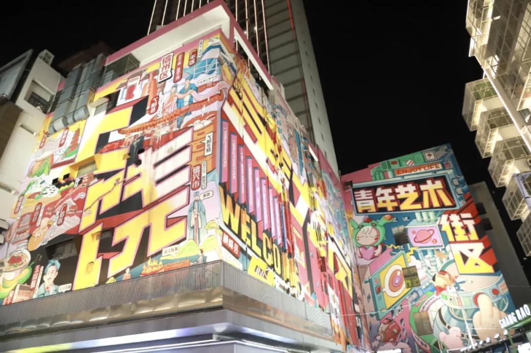 1)720度穹顶式光影互动: 街区创新采用户外720度穹顶式全方位互动设计,通过激光、动态灯光艺术和投影技术,打造覆盖520米主街的沉浸式空间,营造“辉煌不夜城”的夜间景观,增强游客的沉浸感。