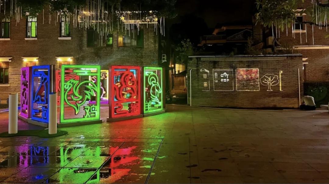 2)AR互动与灯光秀: 启明里与思域科技合作,通过手机小程序与光影艺术结合,游客可参与“十二生肖立牌”互动,触发绚丽的AR灯光秀及烟花、白海豚等特效场景,增强游览趣味性。