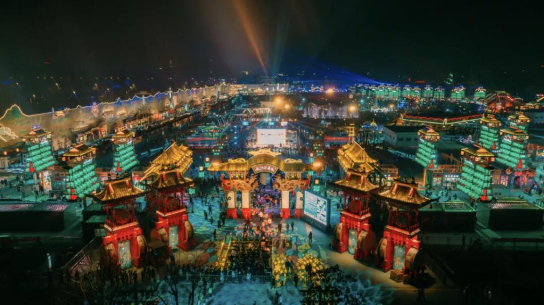 2)沉浸式灯光艺术大秀: 定远营古城在节日期间打造大型灯光秀,如春节庙会时设置上千盏灯笼、激光灯和投光灯,结合舞美鼓阵装置,形成动态灯光矩阵,每晚上演绚丽多彩的视觉盛宴。