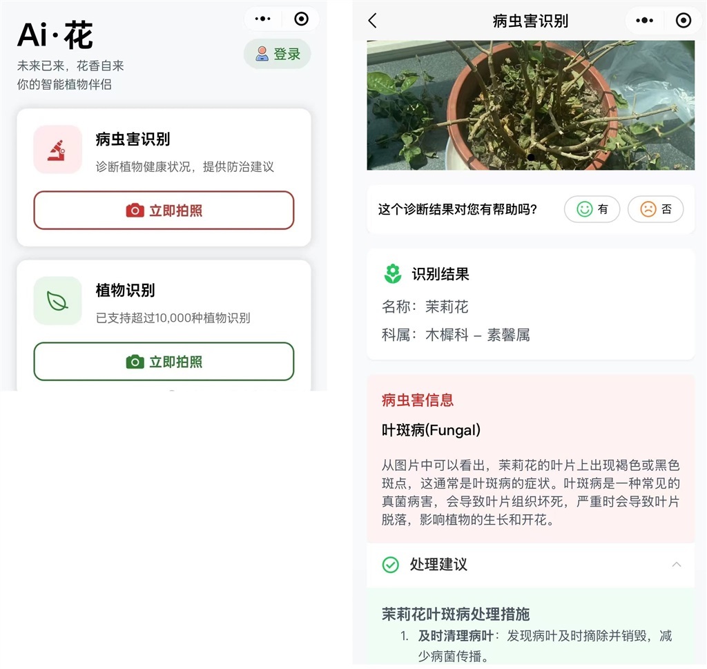 在日常生活中,大家是不是常常遇到这些困扰:“看到路边漂亮的花草叫不上名字,自家植物莫名生病长虫也不知如何处理。”你是否也经历过这些崩溃时刻:“精心养护的月季突然枯黄,翻遍花友圈也查不出病因;花市带回的'无名美人',养了半年仍不知其芳名;多肉长斑不敢乱涂药,跑到花市老板来句'要不你换个盆试试'?”