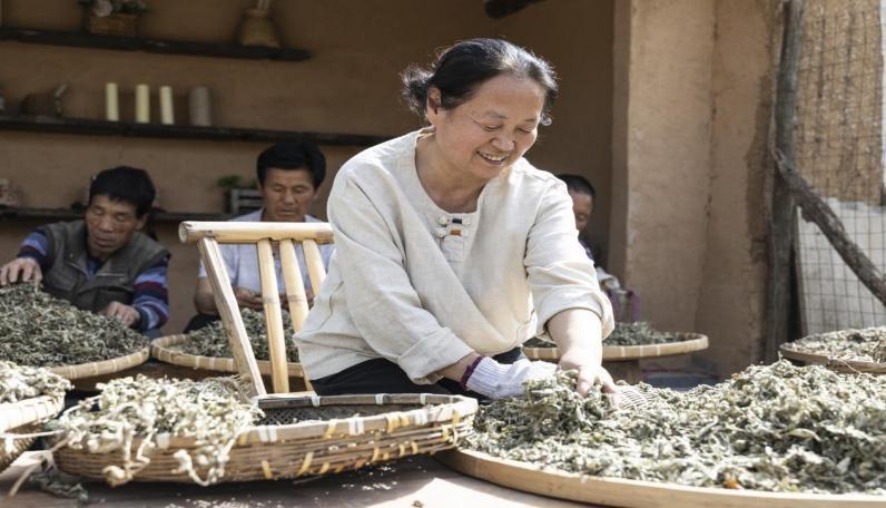 漫步山间小道,记者遇见村民薛美丽正在直播卖野生艾草。“我自小在这里长大,现在生态好了,我们采野生艾草种,种植出的艾草通过直播卖出去,每个月能卖一到两万块。”薛美丽说。